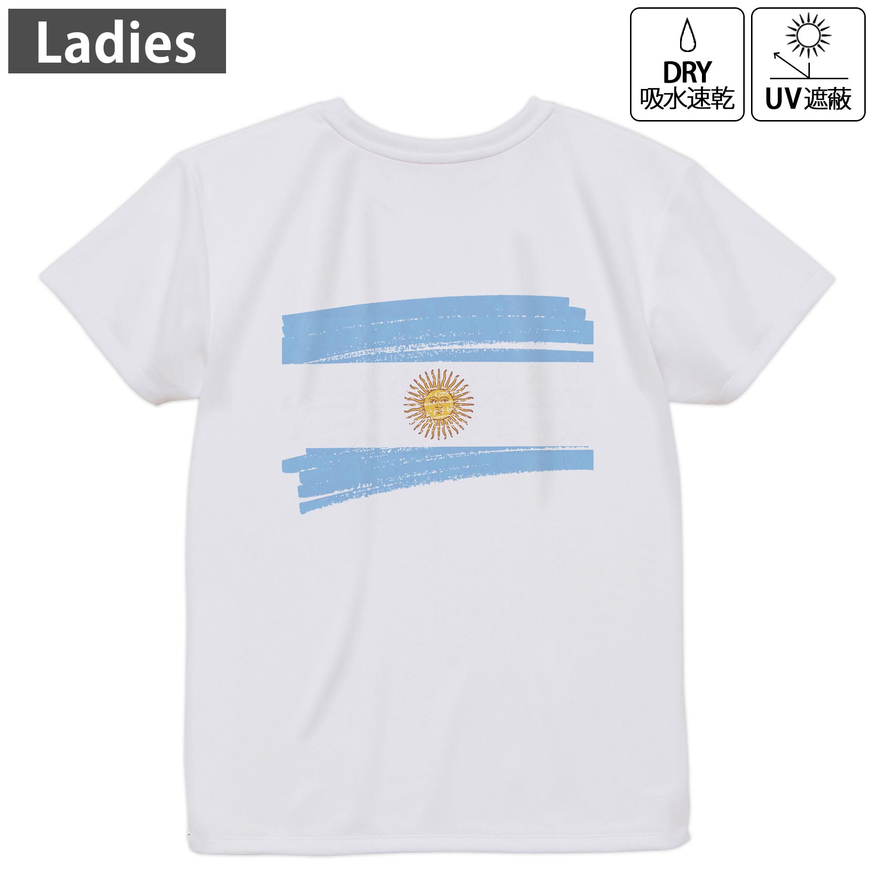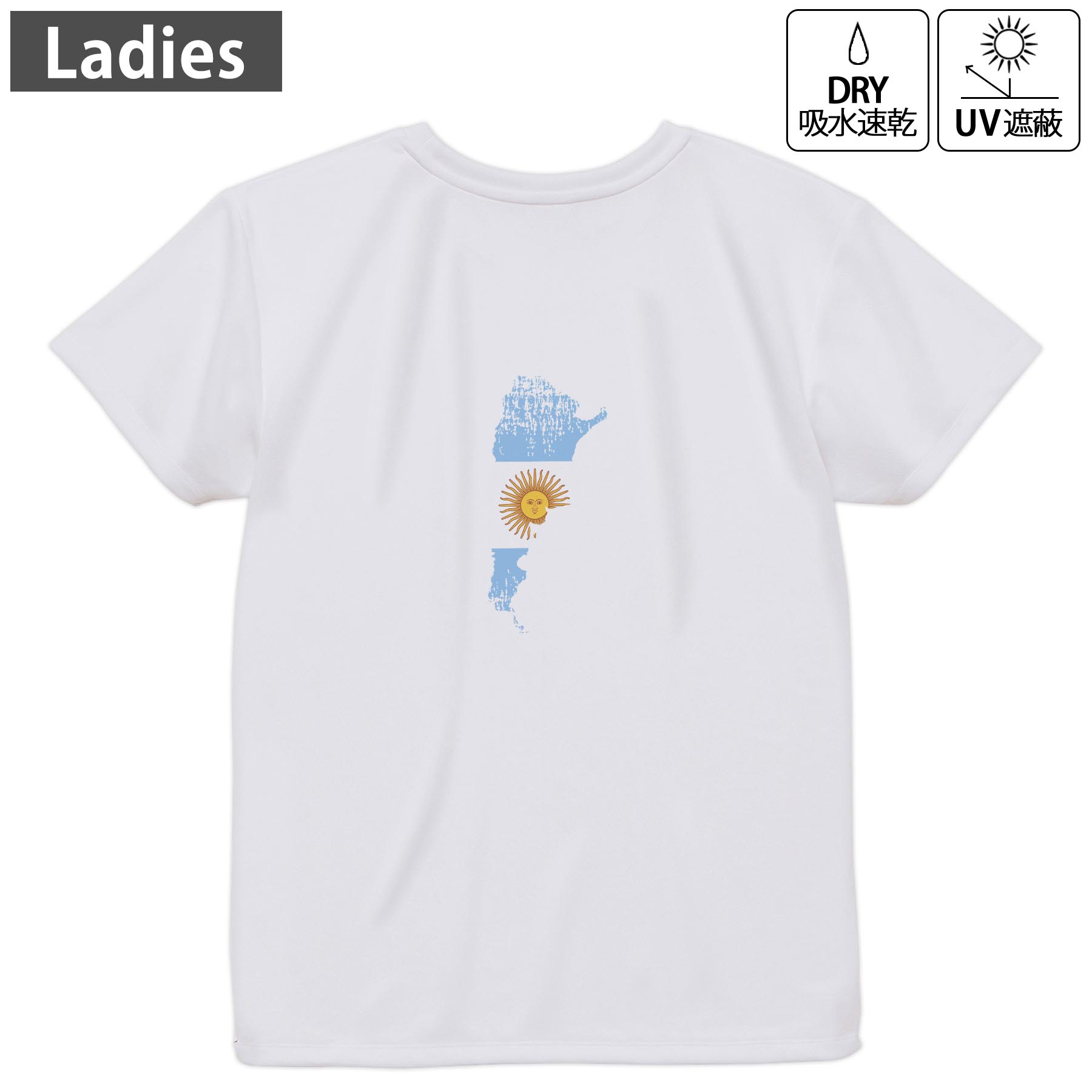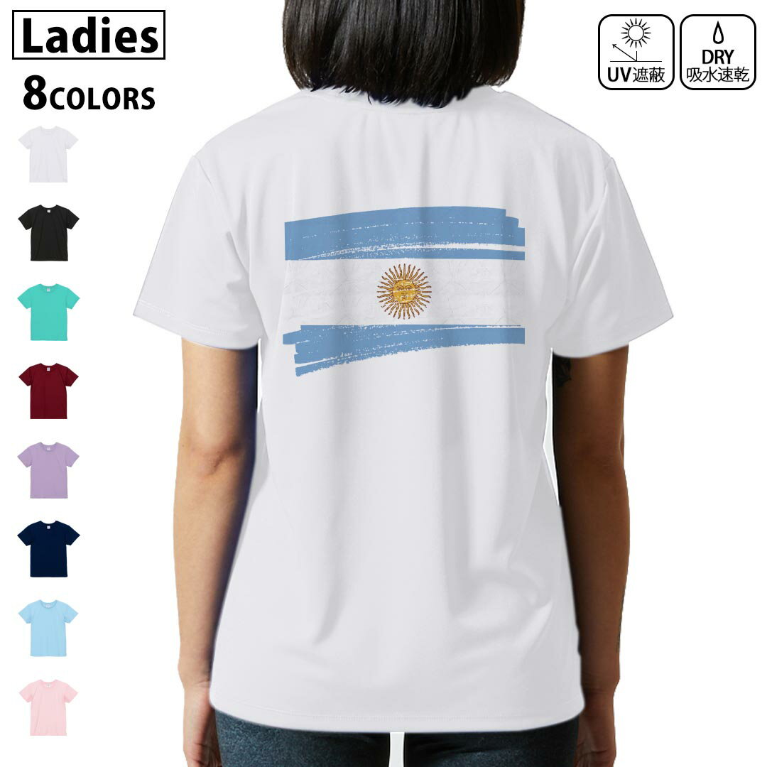 ドライ Tシャツ バックプリント 選べる8カラー tシャツ レディース 半袖 速乾 紫外線遮蔽 UV デザイン 2サイズ Tシャツ ティーシャツ T shirt 018385 argentina アルゼンチン