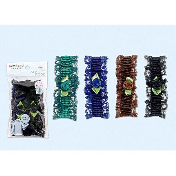 ブラウスやシャツの袖のずれ落ち防止に・・・レース生地とバラの飾りがお洒落なアームバンドです。入数・2個入です。おまかせカラーとなり、色の指定はできませんのでご了承ください。 サイズ(約)・直径9cm〜16cm(最大伸長16cm)材質・ポリエステル、合成ゴム □カテゴリ・E060007 K110202 S270008入数・2個