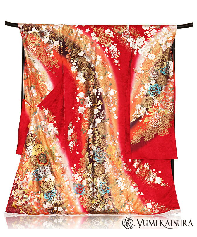 〈桂 由美 振袖〉〔成人式 振袖〕振袖レンタル01062 薔薇金彩モダン花刺繍ゴールド美振袖レンタル 〔レンタル 振袖〕〔成人式〕〔フルセット〕【往復送料無料】【振袖 赤色系】【女性和服】【振り袖】【着物レンタル】【レンタル】【o】