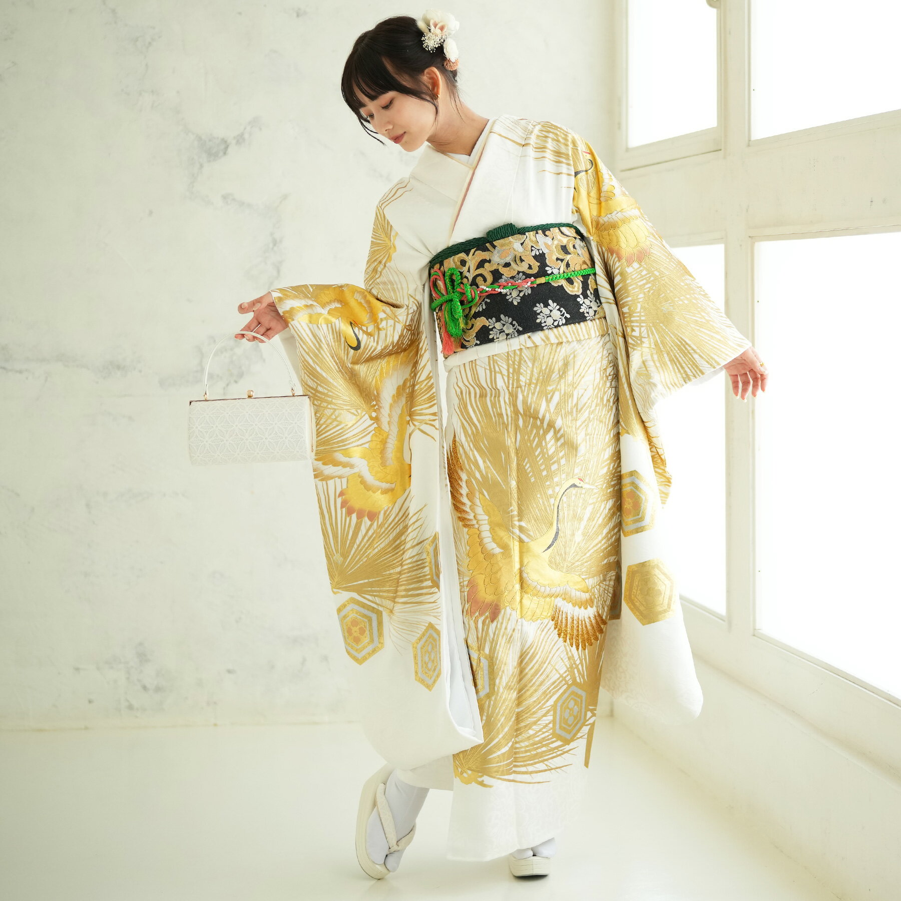 [商品画像について] ※商品画像はできる限り実物を再現するよう心掛けておりますが、お客様のモニターや閲覧環境によって大きく色味が異なる場合があります。 [商品在庫について] ※商品在庫は他店舗販売と共有しているため、更新のタイミングにより在庫切れの場合はやむをえずキャンセルさせていただく可能性があります。 ▼ ▼ レンタル前にこちらもCHECK! ▼ ▼ ▼ ▼ 着物コーデにおすすめのアイテム ▼ ▼■ Description 着付けに必要な小物はすべてそろっているフルセットレンタル。【セット内容】振袖・袋帯・草履・バッグ・長襦袢・帯〆・帯揚げ・重ね衿・肌襦袢・前板・着付けベルト・ウエストベルト・三重仮紐・腰ひも3本セット・帯まくら・伊達締め ・マジックベルト・衿芯・足袋(プレゼント)※お客様ご自身で補整用の薄手のタオルを3-5枚ご用意くださいませ。 --------------【 配送種別 】-------------- 往復送料無料(一部地域は別途差額送料)宅配便のみ ---------------【 ご注意 】--------------- こちらはレンタル商品となります。 レンタル状況により、ご希望日での レンタルができない場合もございます。 ご注文をいただきました翌営業日に、 当店よりレンタル確定のメールをお送りさせていただきます。 その時点でレンタル契約確定とさせていただきます。 ■ Detail [ カラー ] 白系 [ 素材 ] 着物・帯…正絹 [ 適応サイズ ] フリーサイズ(身長155-165cm) [ 実寸サイズ ] 身丈 約165cm 袖丈 約107cm 裄丈 約67cm足袋・草履 ワンサイズ(フリーサイズ)※約23cm-24cm前後に対応※ソックスタイプストレッチ足袋 [ 原産国 ] 生地:日本 / 縫製:中国 [ 品番 ] 1000618000 ------------------- ご注意ください ------------------- トラブル防止のため、レンタル商品は、 【代金引換不可】 【後払い決済不可】 【コンビニ受取不可】 です。 楽天市場のシステム上、ご注文時に選択肢が表示されますが その場合キャンセルとなりますので予めご了承ください。 This is a rental product and is not shipped overseas. ▼レンタル安心パックはこちらから▼