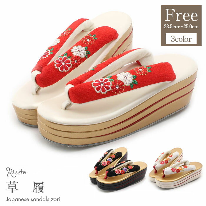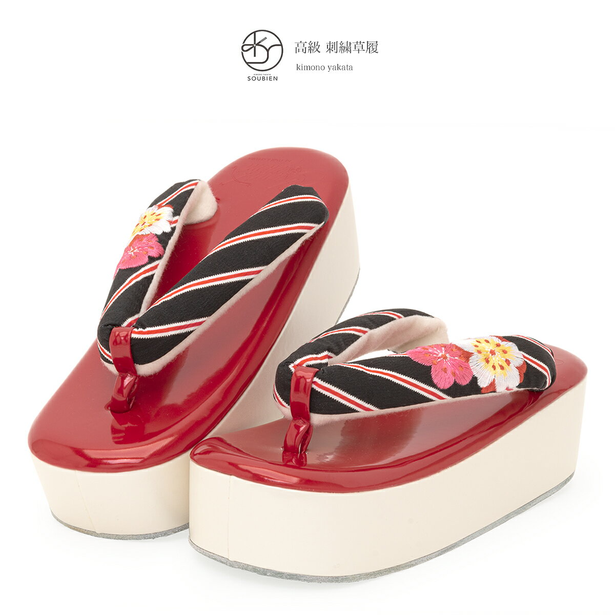 Black Friday☆最大1000円クーポン配布中☆草履 厚底 振袖 成人式 卒業式 袴 レディース 卒業式 ぞうり 盛装 yumiyumi 黒 赤 白 桜 さくら ストライプ 刺繍 クッション 桂由美 KATSURA YUMI フリー 送料無料