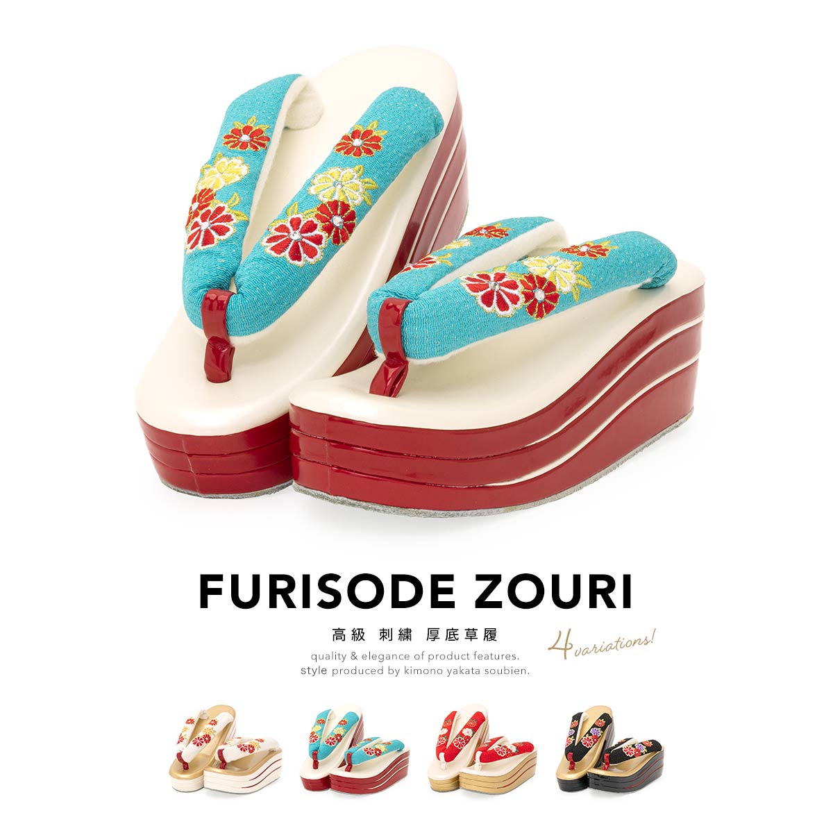 \全品ポイント10倍中/ 振袖 草履 孔雀刺繍 桂由美 KATURAYUMI 華やか 古典 厚底 大きい 痛くない 成人式 レディース 刺繍 花 レトロ ママ振袖 振袖用 卒業式 袴 結婚式 和婚 青 赤 黒 フリーサイズ Mサイズ Lサイズ 【LINE登録で5%OFF】
