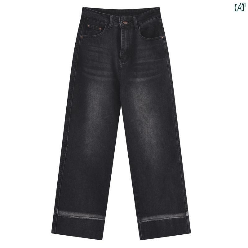 レディース ファッション レディース オシャレ かわいい 綺麗 上品 初秋 婦歳 服 小柄 たり スリム ワイド レッグ パンツ ズボン レトロ ウォッシュ ハイウエスト ストレート ジーンズ