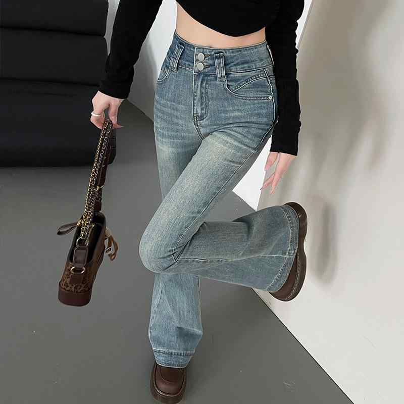 ハイウエスト レトロ ワイドレッグ ジーンズ レディース 春秋 2025 ルーズ スリム スモール ストレート ロング パンツ カジュアル