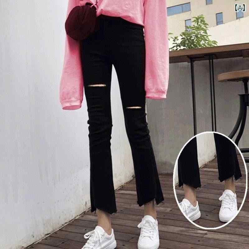 ハイウエスト ジーンズ レディース ストレッチ 美脚 脚長 女性用 大きいサイズ ジーンズ ハイウエスト ゆったり 着 痩せ リッピング 韓国 学生 100 kg mm 九分丈 マイクロフレア パンツ
