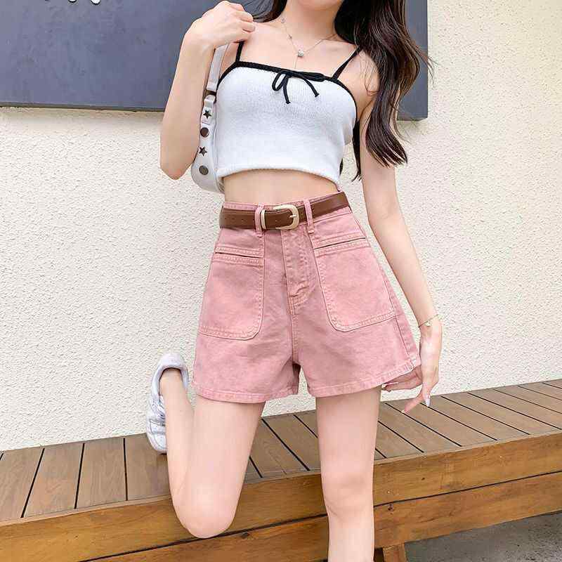 ファッション 服 オシャレ カワイイ シンプル 大カワイイ サイズ 婦服 ピンクデニムパンツ 夏 スリム ポケット aライン ワイド レッグ パンツ