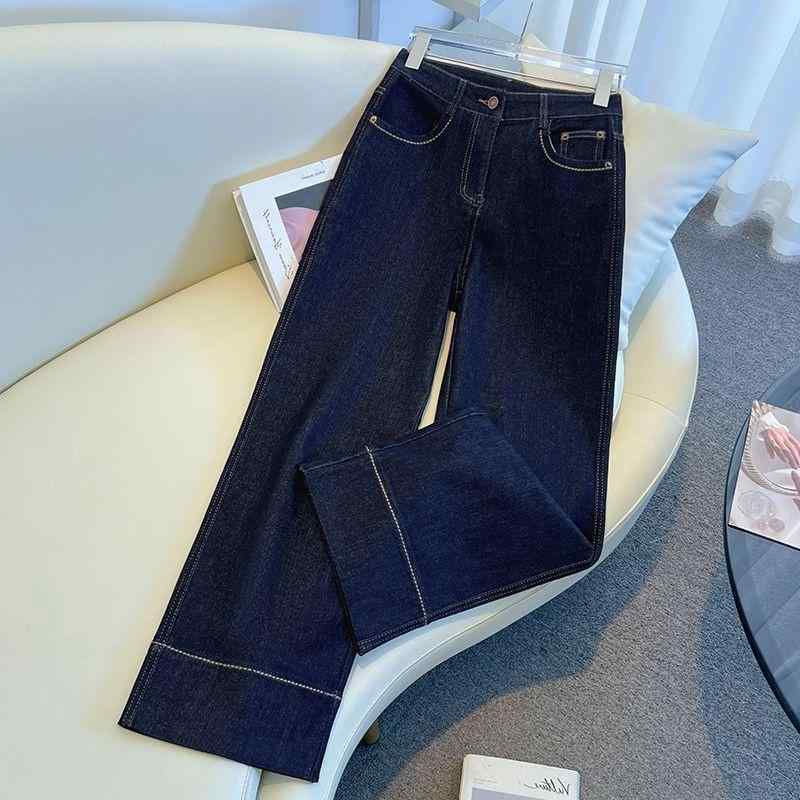 ハイウエスト レトロ ワイドレッグ ジーンズ レディース 春秋 2025 ルーズ スリム スモール ストレート ロング パンツ カジュアル ウエストタイプ:ハイウエストパンツのサイズ: 2XL XL XS SML