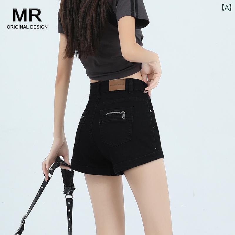 レディース 夏 パンツ デニム スタイリッシュ 黒 ハイウエスト デニムショート 女性 薄手 弾性 スリム ガールズ バイブスーパー ショート ホット