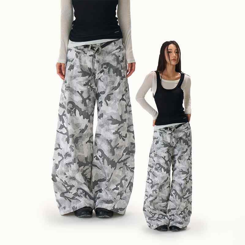 パンツ カジュアルパンツ アメリカンストリート レトロ カモフラージュ 迷彩柄 レディース ゆったり ストリート ストレート ドレープ モ ッピングパンツ カジュアル レジャー 休日 旅行