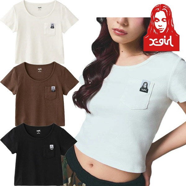 エックスガール X-girl FACE LABEL POCKET BABY TEE フェイス ポケT ベビーT ちびT へそ出し Y2K 半袖 Tシャツ レディース ストリート ブランド 新品 正規品