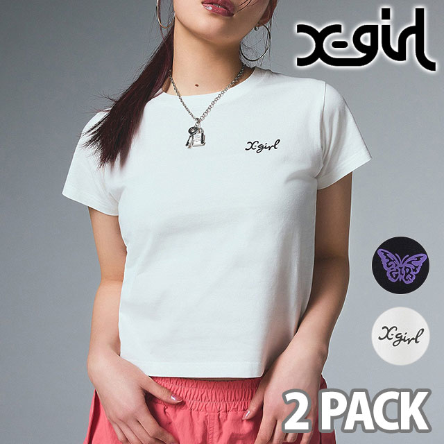 【最大100%ポイントバック!】エックスガール X-girl 2枚1セット ロゴ アンド バタフライ 2パック ショートスリーブ Tシャツ [105252011032 SS25] LOGO AND BUTTERFLY 2P S/S BABY TEE レディース Xgirl トップス 半袖 パックティー MULTI 正規取扱店【ts】【e】