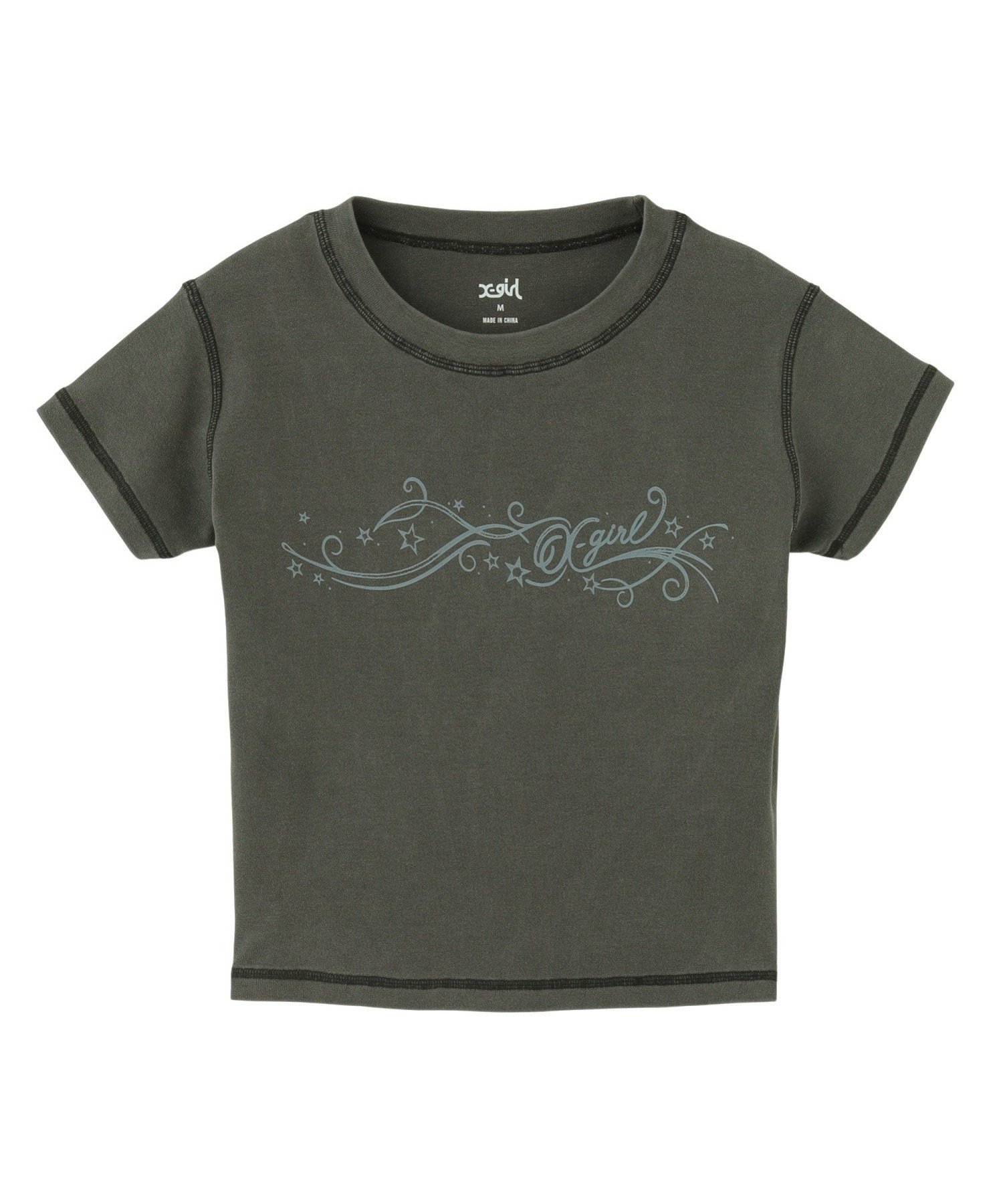 【SALE/40%OFF】X-girl ORNAMENT LINE LOGO S/S BABY TEE X-girl エックスガール トップス カットソー・Tシャツ ブラック カーキグリーン ネイビー