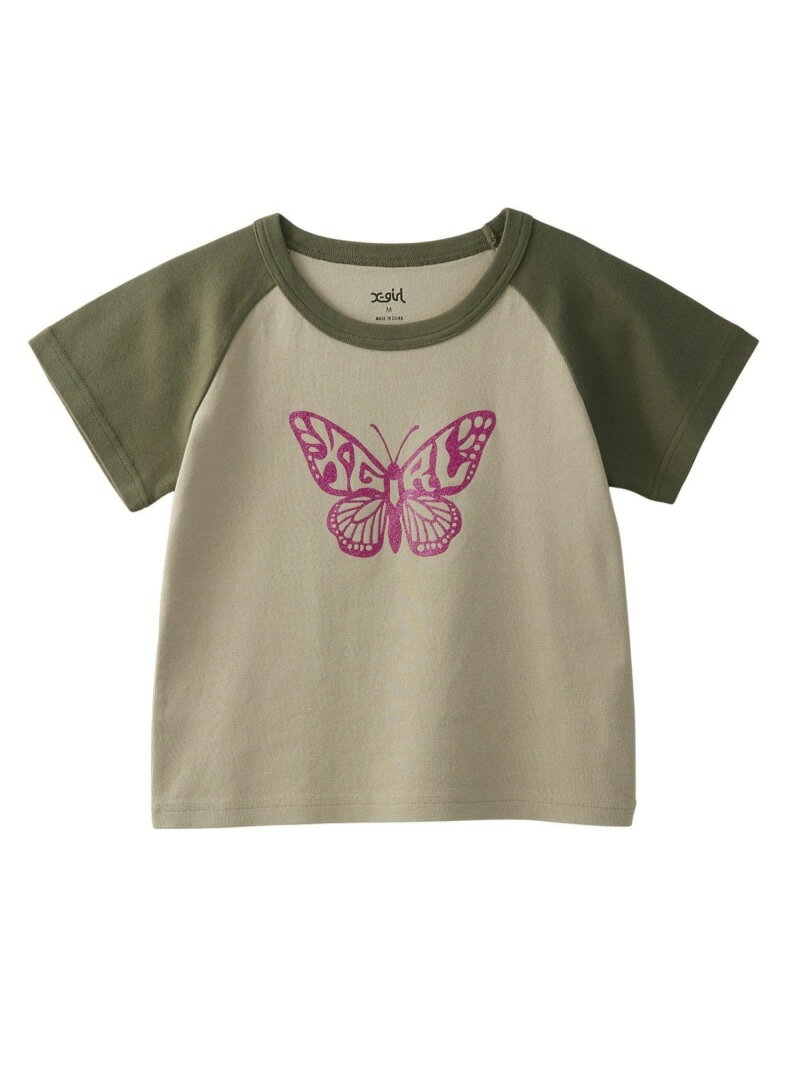 楽天スーパーSALE【公式】X-girl エックスガール GLITTER BUTTERFLY RAGLAN S/S BABY TEE 半袖Tシャツ ちびT ストリート トップス