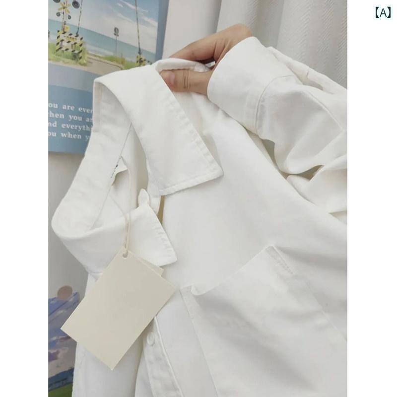 Yシャツ 無地 シンプル 100 % コットン 綿 シャツ レディース 春秋 重ね 着 カジュアル ゆったり ホワイト カップル 長袖 トップス ジャケット
