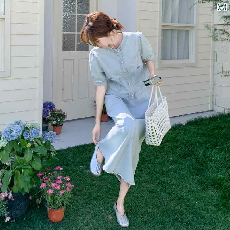 セットアップ レディース カジュアル おしゃれ 上品 ブルー 韓国 デニム 初夏 半袖 ジャケット スカート