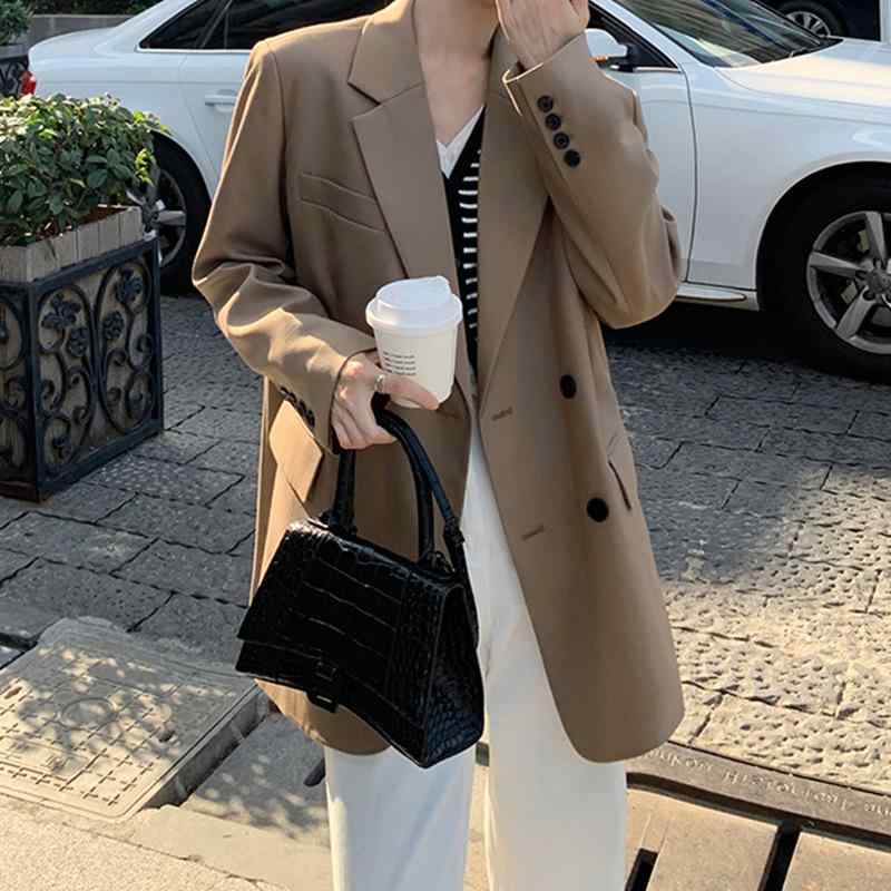 ジャケット レディース 大きいサイズ ゆったりめ 韓国風 テーラード 秋冬 無地 アウター 長袖 上着 羽織り物 カジュアル きれいめ オフィス 通勤 ブラック 黒 ブラウン 茶色 S M L XL 2XL