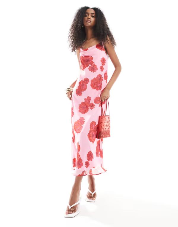 ベロモーダ レディース トップス ワンピース ミディワンピース フラワー柄 プリント ミディ フラワー Vero Moda Tall Smilla cowl neck cami midi dress and pink floral print BONBON SKIRT PRINT レッド