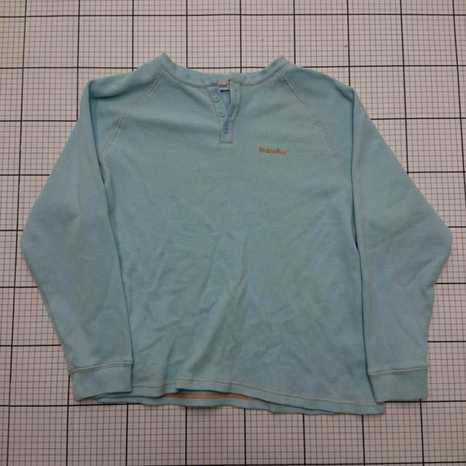 ◇ ◎ BROKEN BASE フロントボタン シンプル 切りっぱなし 長袖 シャツ サイズⅬ ブルー レディース E 【中古】