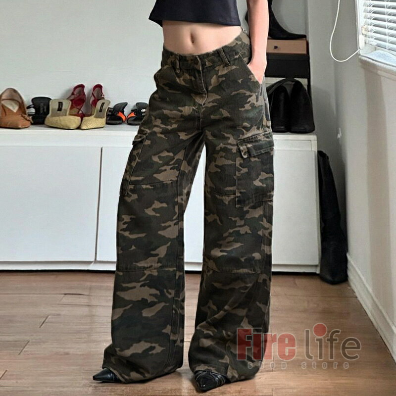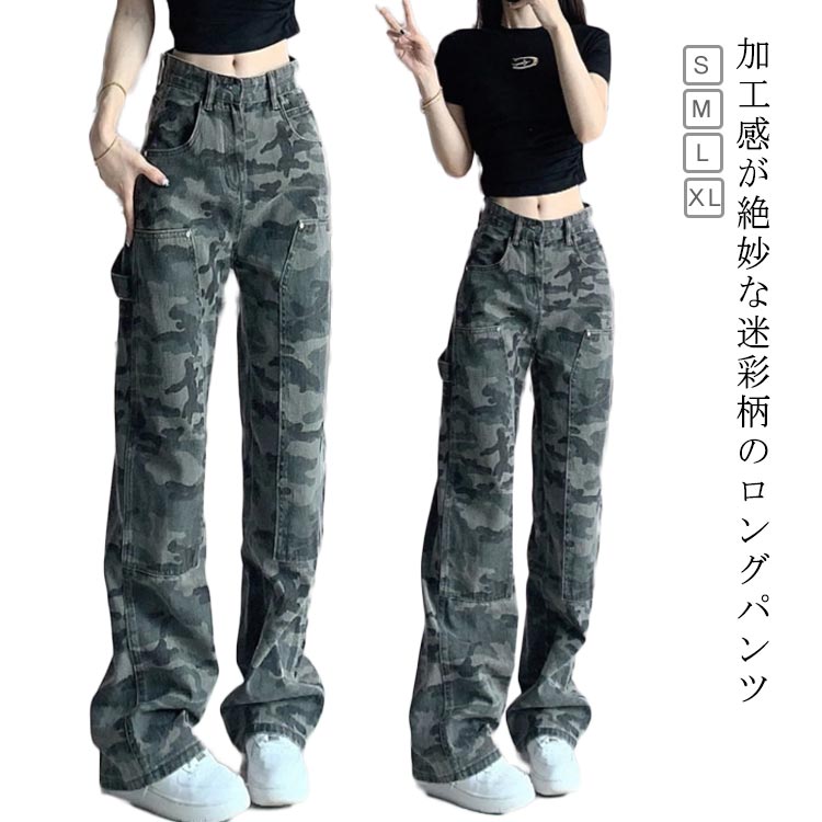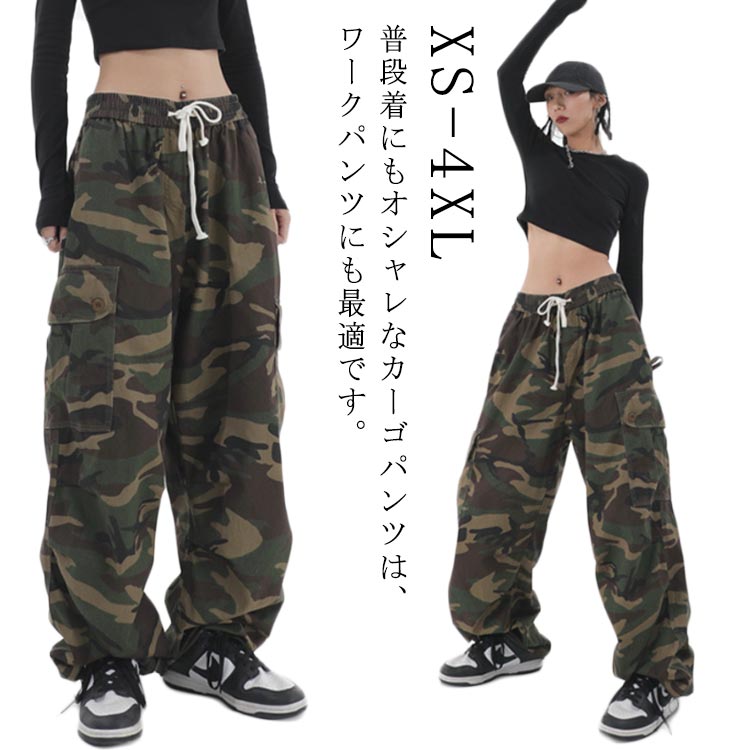 カーゴパンツ カモフラージュ柄 おしゃれ ストリート ロングパンツ レディース ストレートパンツ 迷彩パンツ ダンスパンツ ワイドパンツ ゆったり ダ