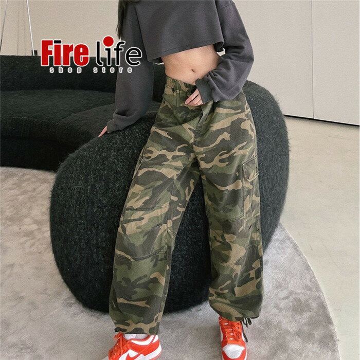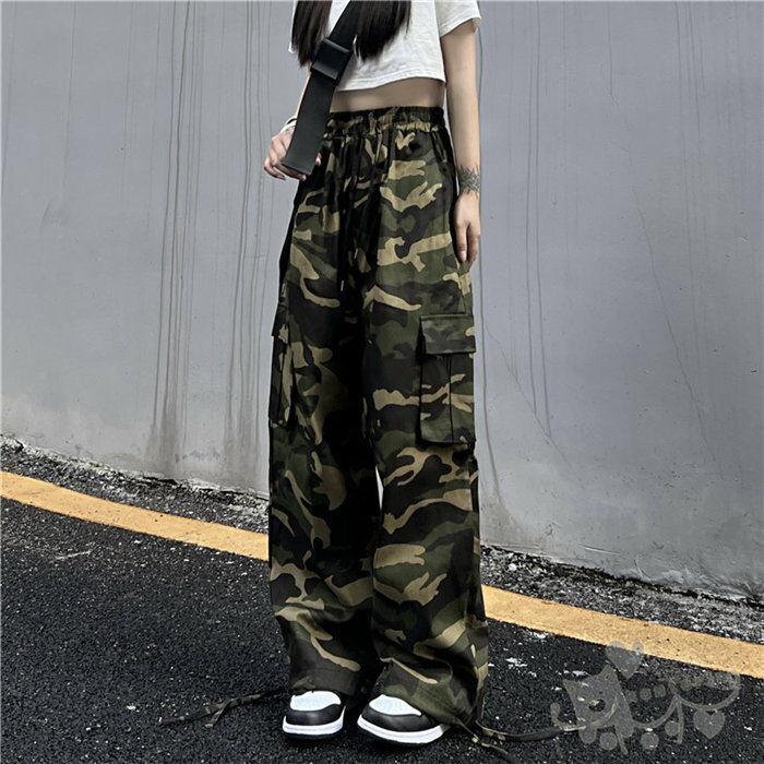 ワイドパンツ 迷彩柄 ダンス衣装 レディース アメカジ ジョガー ストレート グリーン BF風 韓国 HIPHOP ヒップホップ 個性的 服 原宿系 ジュニア カレッジ風 オシャレ かっこいい 送料無料