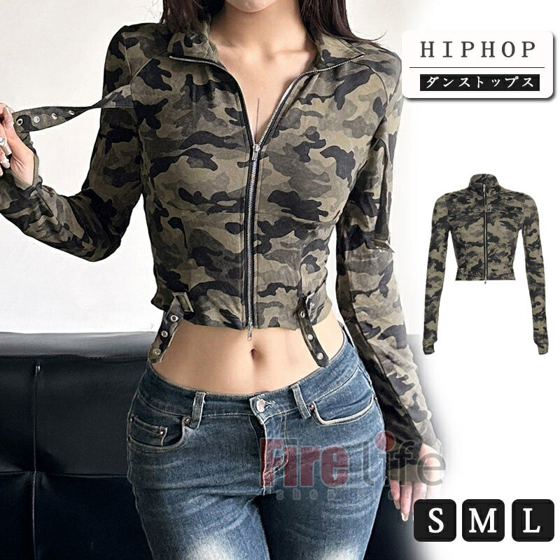 ダンストップス 迷彩柄 トップス レディース 長袖 カモフラージュ ダンス衣装 帽子付き クラシック 切り替え へそ出し セクシー 原宿系 奇抜 派手 ダンス 衣装 ヒップホップ コスチューム 個性的 服 原宿系 送料無料 即納