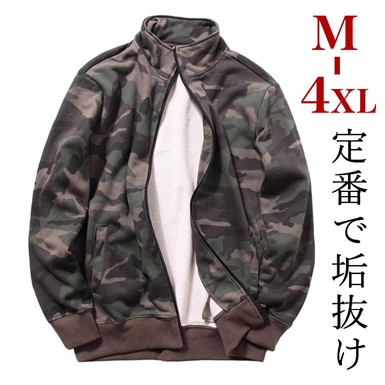 高見え定番アイテム フードなし さらりと羽織れる定番カモフラ柄スウェット ジップアップ ファスナー スウェット トレーナー フードレス フード無し 迷彩 カモフラ アーミー 裏パイル 裏毛