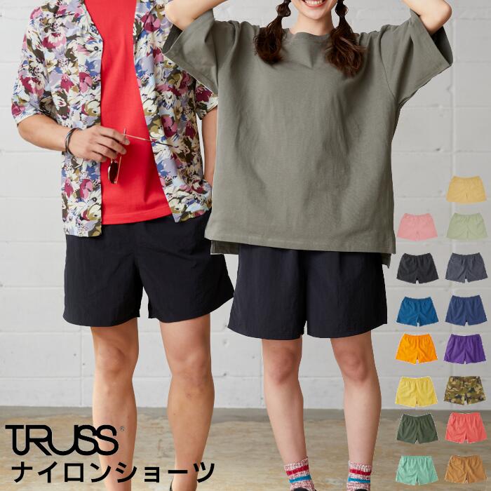 ナイロン ショーツ 無地 メンズ レディース ユニセックス TRUSS トラス ショートパンツ 撥水 パッカブル カジュアル スポーツ 運動 半ズボン ブラック ネイビー グレー ネイビー オレンジ イエロー ブルー パープル オリーブ 黒 紫 青 紺 迷彩 XS S M L XL NSV-505