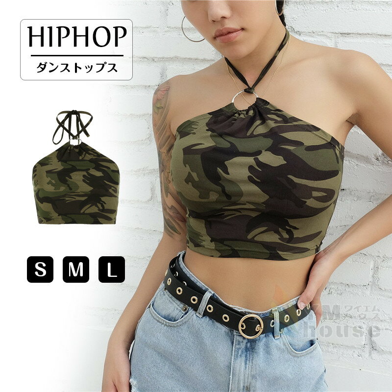ダンス衣装 レディース キャミソール デコルテ ショート丈 トップス 迷彩柄 へそ出し 大人 ダンス ステージ衣装 韓国 ファッション インナー セクシー 個性 カッコイイ イベント クラブ