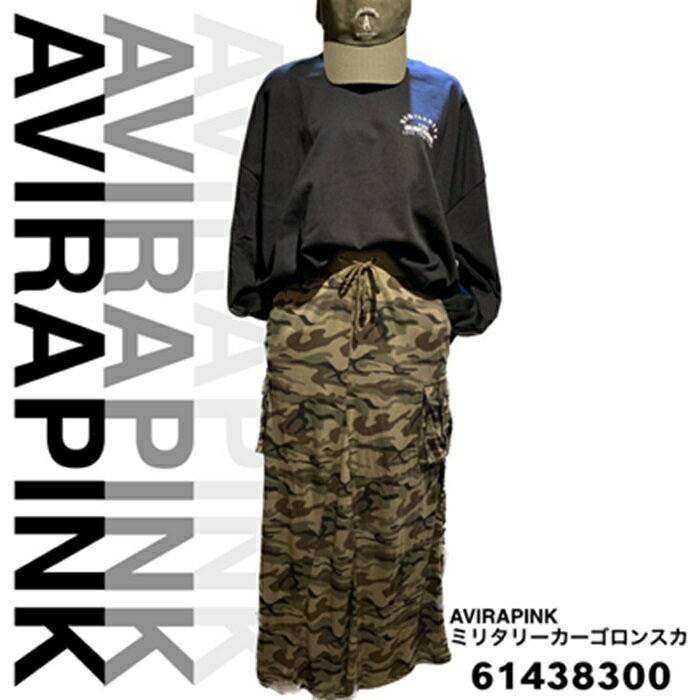 AVIRAPINK ポケット付迷彩ロングスカート レディース スカート カジュアル おしゃれ 迷彩柄 ミリタリー カーゴロングスカート アパレル 総柄 ボトムス カモフラージュ ストリート