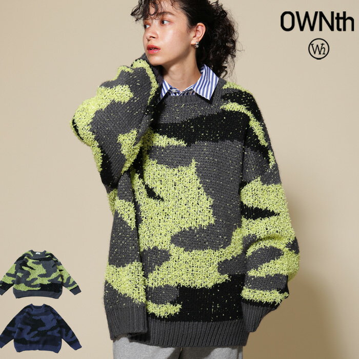 対象商品購入でポイント10倍!27日1:59迄 カモフラ柄 ニット ユニセックス クルーネック 送料無料・メール便不可