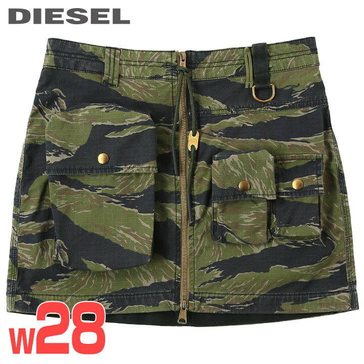 【P11倍&エントリーで+4倍】★DIESEL ディーゼル レディース★カモフラ迷彩柄 フルジップ ミリタリーミニスカート【O-IRAIDA-CMF】【W28】【カーキグリーン】die-l-s-e8-p1a 《メーカー希望小売価格30,800円》