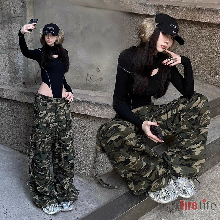 迷彩 パンツ レディース ストリートファッション ミリタリー 迷彩 メイサイ ワークパンツ ワイドパンツ ダボパン カーゴパンツ デニムパンツ 迷彩 パンツ レディース 綿70% スパンデックス30% 迷彩 パンツ[ブラックフライデー ポイント倍増中]