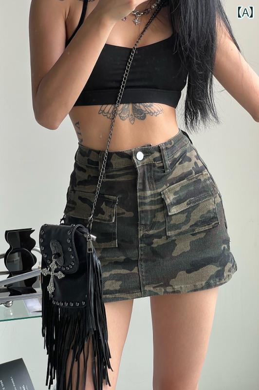 デニム スカート レディース ボトムス 迷彩 カモフラ 大きいサイズ 春夏 アメリカ ハイウエスト 弾性 薄手 グリーン