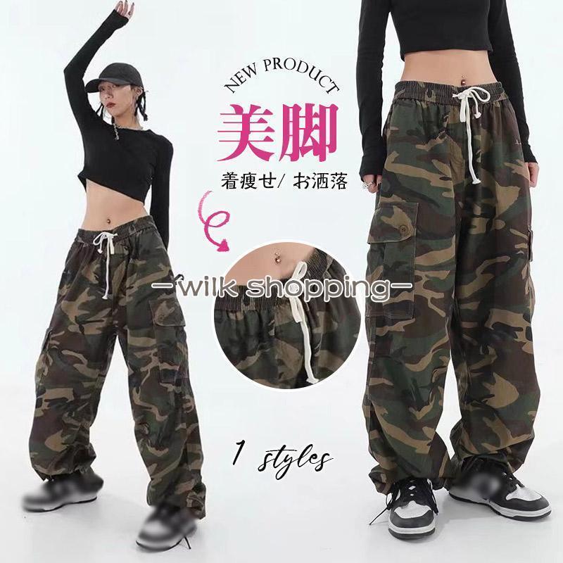 カーゴパンツ レディース 迷彩柄 ダンス カモフラ パンツ ミリタリー ロングパンツ ゆったり 迷彩カーゴパンツ ヒップホップ 衣装 衣装 HIPHOP ダンス 発表会 迷彩パンツ ロング丈 大きいサイズ 送料無料