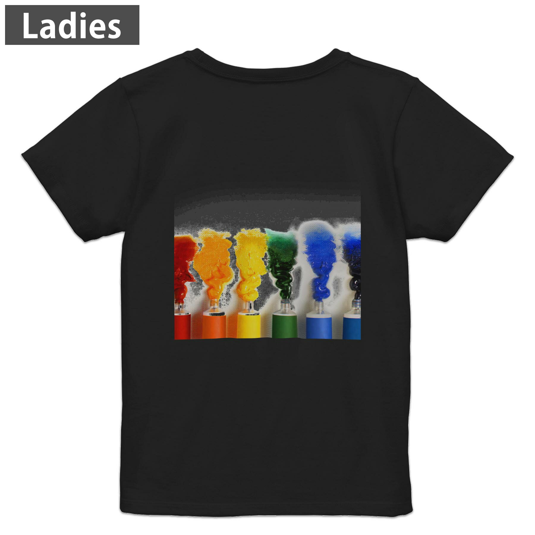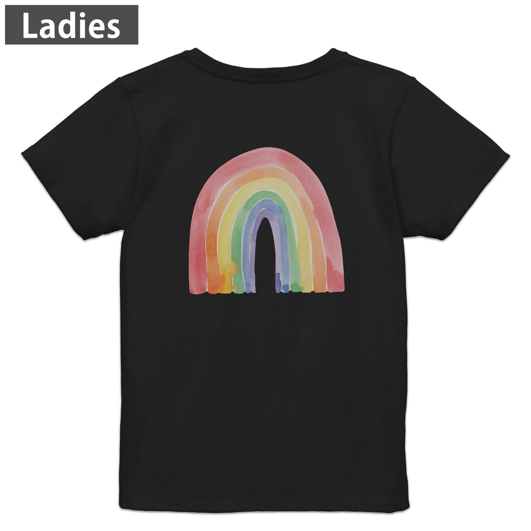 Tシャツ レディース バックプリント 半袖 ブラック 黒 デザイン M L tシャツ ティーシャツ T shirt 031716 虹 カラフル 絵具