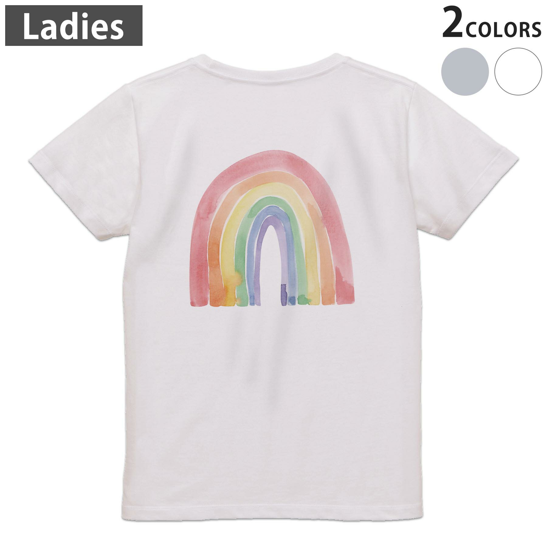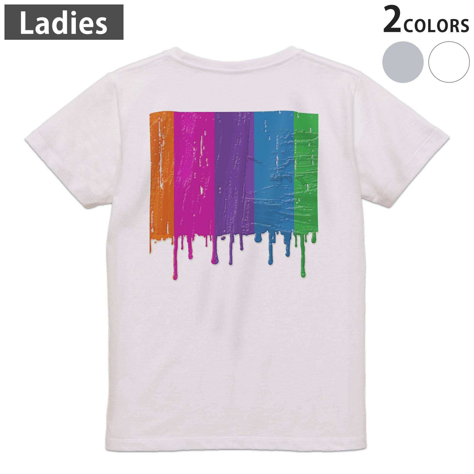 Tシャツ レディース バックプリント 半袖 ホワイト グレー デザイン M Lティーシャツ T shirt 031716 虹 カラフル 絵具