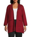 マルチプルズ レディース アウター ニット・セーター プラスサイズ セーター カーディガン ニット Multiples Plus Size Knit 3/4 Sleeve Open-Front Solid Long Sweater Cardigan Crimson クリムゾン