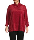 マルチプルズ レディース トップス シャツ リブニット プラスサイズ ニット Multiples Plus Size Soft Textured Striped Plush Rib Knit Wrap Collar 3/4 Bungee Sleeve Top Crimson クリムゾン