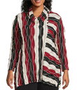 マルチプルズ レディース トップス シャツ プラスサイズ プリント ニット Multiples Plus Size Jacquard Knit Textured Wavy Stripe Print Collar Neck 3/4 Sleeve Top Crimson クリムゾン