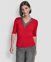ダナ キャラン ニューヨーク レディース アウター ニット・セーター リブ セーター DKNY Women's Embellished-Neck Half-Sleeve Ribbed Sweater City Crimson クリムゾン