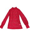 Allegra K 花柄ブラウス 長袖 トップス スモック ハイネック メッシュ レース レディース クリムゾン XS