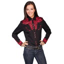 #912156スカリー Scully フローラル刺繍入りウエスタンシャツ クリムゾン レッド PL-654 CRI XS-M 【送料無料】