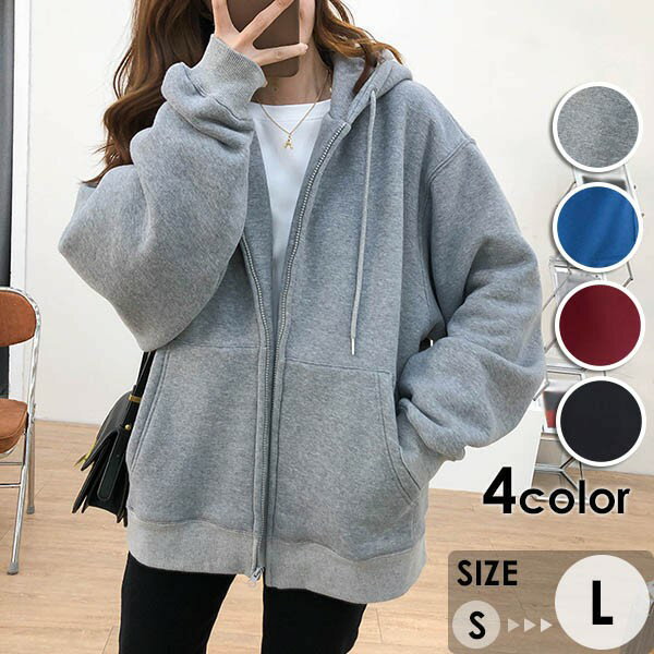 パーカー レディース スウェット トップス コート 羽織 大人カジュアル 大きめ フードあり ジップアップ 大きめ ビックシルエット オーバーサイズ ジップアップパーカー 大きいサイズ グレー ブラック ブルー ワインレッド ボアあり ボアなし eh002jcjcc6