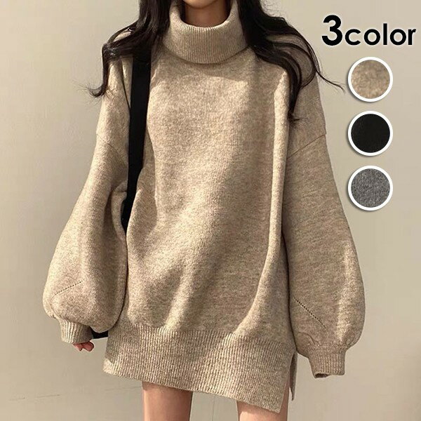 タートルネック ニット セーター レディース 3カラー 可愛い 長袖 トップス カットソー 秋 秋服 秋物 冬 冬服 冬物 ゆったり おしゃれ ロング 暖かい ブラック ホワイト キャメル グリーン eh074jc
