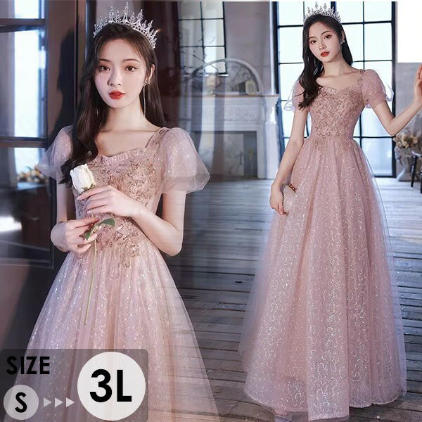 パーテイードレス ロング丈ドレス レディース 着痩せ 発表会 演奏会 二次会 大きいサイズ ファスナータイプ エレガント 20代 30代 40代 大人 可愛い 結婚式 披露宴 フォーマルドレス ピンク eh156jcjcd7