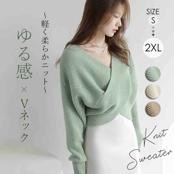 Vネックセーター レディース ニットセーター オフショルダー オフショルニット 春秋風 長袖 ドロップショルダー 肩出し 大人 フェミニン 可愛い ざっくり編み リブニット ショート丈 ゆったり グリーン ベージュ ブラウン 秋冬 韓国風 eh077x1x1ze