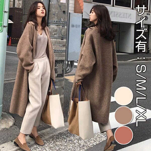 ニットガウン ロングカーディガン 秋冬 ゆったり レディース ニット 厚手 ロングニット もこもこ 学生 ざっくりニット ゆるニット カーデ ロングカーデ アウター 冷房対策 長袖 シンプル ゆったり ベーシック 羽織り 大きいサイズ【S/M/L/XL】 ベージュ ブラウン eh011x1x1l6