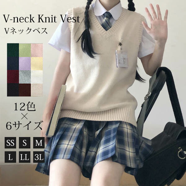 スクールベスト レディース ニットベスト Vネック ノースリーブ 制服 中学生 高校生 学生服 女子校生 受験 入学式 卒業式 春 夏 12色 XS〜2XL ベスト 袖なし 学生 春ニット 春物 カジュアル 女の子 スクールニット eh065x1x1x1