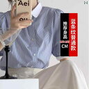 レディース 半袖シャツ かわいい 夏用の 女性用 ブルーストライプ 半袖 シャツ な 小さめの 通勤用 フレンチ パフスリーブ トップ