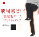 窮屈感ゼロ 裏起毛 デニムプリントパンツ レディース 日本製 ハイテンションパンツ 暖かい あたたかい 冬 あったかい ウエストゴム 冷えとり 防寒 女性用 ウォーム 股下70 ブラック ダークネイビー